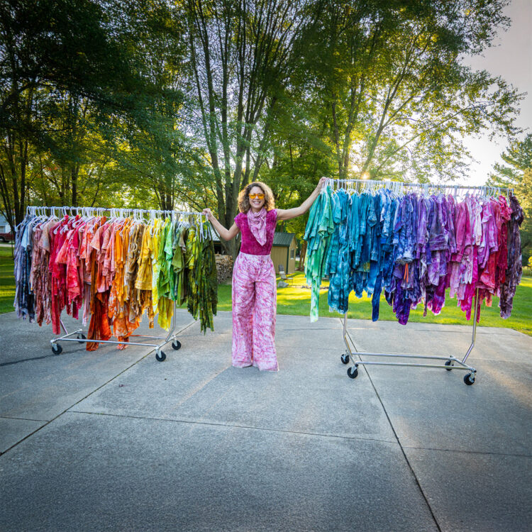 Forget tie-dye spirals. Dash-Dyeing is our intuitive, sensory-rich process where powdered pigments are misted onto natural fibers like whispers of memory and magic. No two pieces are the same. It’s a ceremony of movement, intention, and transformation.