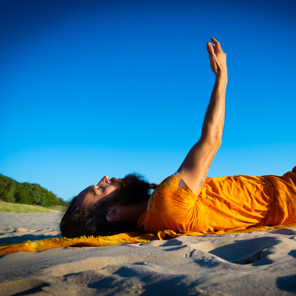 When I invited him into a Power Portrait, he immediately chose Soft Orange. We reconnected at P. J. Hoffmaster State Park with his drum in hand, ready to co-create. The waves rolled in rhythm with our steps, and Kendall danced with the sun, glowing like he’d always belonged in this color. It was less of a photo session, more of a remembering.